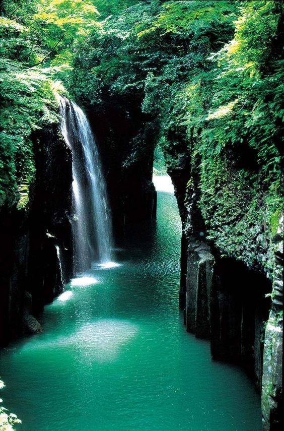 | Takachiho Gorge, located in the Miyazaki Prefecture of Japan, is a breathtaking natural wonder known for its stunning landscapes and unique geological features. It is a narrow chasm cut through the rock by the Gokase River. The nearly sheer cliffs lining the gorge are made of volcanic basalt columns which resemble the scales of a dragon where the stone twisted and flowed as it formed. | |