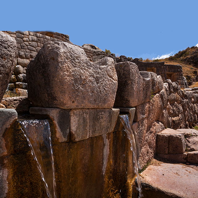 | Tambomachay is an archaeological site located about 7 km from the city of Cusco in Peru. It is believed to have been a site of religious importance during the Inca Empire, and it consists of a series of aqueducts, canals, and waterfalls that are still functional today. | |