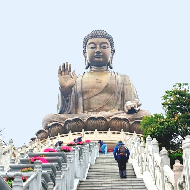 | - Height: 34 meters (112 feet), including the base. - Weight: Over 250 metric tons. - Made of bronze, the statue represents the harmony between humans and nature and is a symbol of faith. - Visitors climb a staircase of 268 steps to reach the base of the statue, which offers stunning panoramic views of Lantau Island, the South China Sea, and nearby mountains. - The statue is a centerpiece of Po Lin Monastery, a renowned Buddhist temple. - The Buddha is seated on a lotus atop a three-tiered altar, symbolizing purity and enlightenment. | |