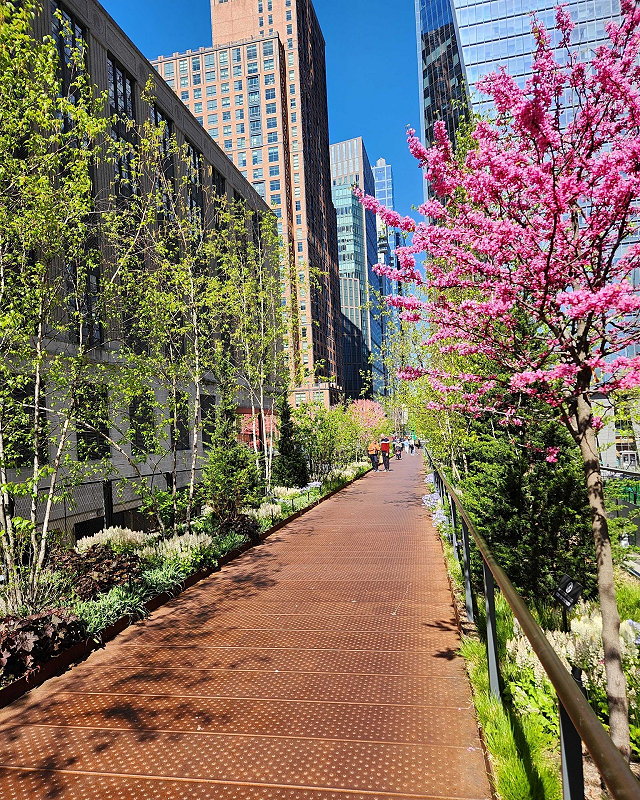 | - The park features beautifully designed gardens with over 500 species of plants, offering a constantly changing landscape that reflects the seasons. - The High Line regularly showcases contemporary art, including sculptures, murals, and interactive exhibits. - Visitors enjoy stunning views of the Hudson River, New York City’s skyline, and the streets of Chelsea and the Meatpacking District below. | |