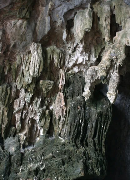 | Tham Bang Cave is extremely large as well as deep, with aheight of 100 meters ad with many small crevices and tunnels. In the middle of the cave, stands abig stone as even and flat as a large table. Hanging down from the cave wall are stalactites in various figures of dragons, lions, phoenixes, elephants. | |