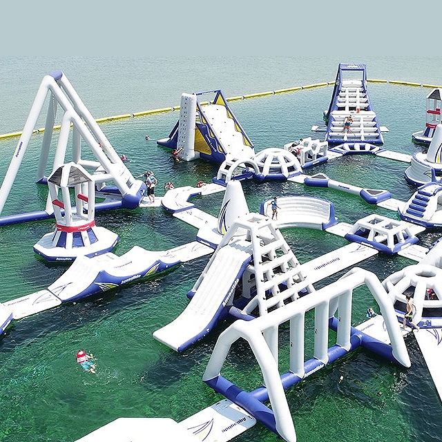 | The Adventure Lagoon of Anaheim is home to one of the largest floating aqua parks sitting on top of our crystal clear lake that stays 74 to 78 degrees year round. Try to conquer all the obstacles with your friends. | |