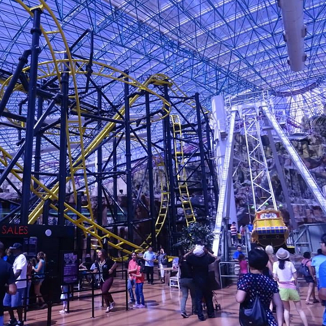 | The park is connected to the hotel inside a large glass dome, and currently offers 25 rides and attractions including the Canyon Blaster roller coaster, rock climbing wall, 18-hole miniature golf course, an video game arcade, clown shows, Xtreme Zone, Pikes Pass, Virtual Reality Zone, Midway Games, and carnival-type games. | |