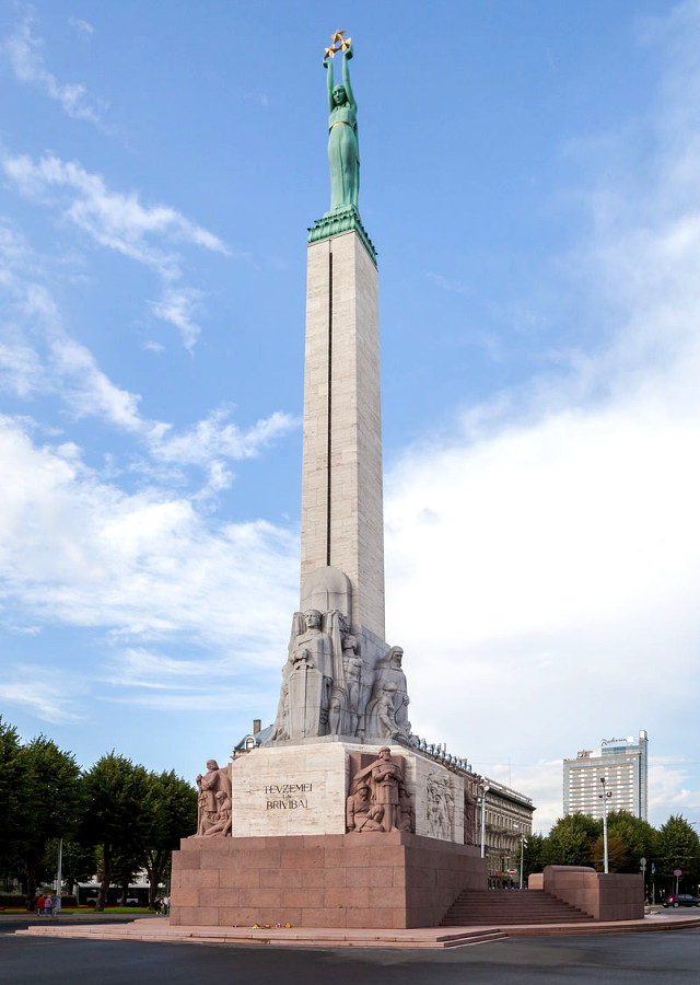 | The Freedom Monument, known as Brīvības piemineklis in Latvian, is one of the most iconic and cherished landmarks in Riga, the capital of Latvia. This monument holds significant historical and cultural importance for the Latvian people and symbolizes the country's struggle for independence and freedom. It honors soldiers killed during the Latvian War of Independence (1918–1920). | |