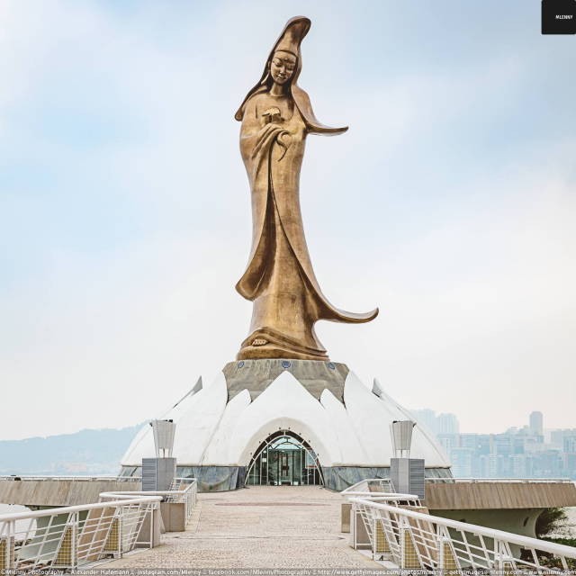 | The Statue of Kun Iam, also known as the Goddess of Mercy, is a large bronze statue located on a man-made island in the Outer Harbor of Macau. The statue, which stands at 20 meters tall, was erected in 1999 as a symbol of peace and harmony. | |