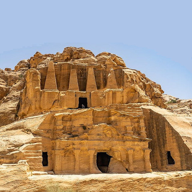 | The term "triclinium" originally comes from Roman dining practices, where guests would recline on three couches (tri-clinium) around a central table during meals. In Nabataean culture, it’s believed that triclinia were used for ritualistic feasting, likely tied to funerary or religious ceremonies. The Al-Baydha area, also known for its Neolithic remains, is a fascinating blend of Nabataean and earlier history. Its rock-carved structures, including the triclinium, show the skilled craftsmanship and cultural influences that shaped this part of Jordan during ancient times. | |