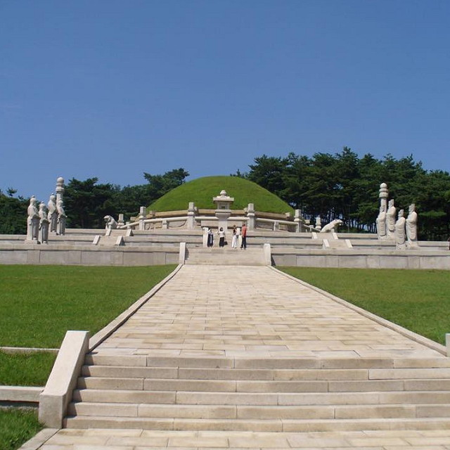 | Here are some key points about the Mausoleum of King Wang Kon: - King Wang Kon: King Wang Kon, also known as King Taejo, was the founder and first king of the Goryeo Dynasty, which ruled over Korea from 918 to 1392. He played a crucial role in unifying the various kingdoms of the Korean Peninsula. - Construction: The mausoleum complex was built in the 10th century and is considered one of the oldest royal tombs in Korea. It features traditional Korean architectural elements, including stone walls, gates, and ceremonial halls. - Cultural and Historical Significance: The Mausoleum of King Wang Kon is an important cultural and historical site in North Korea. It is revered as the final resting place of a significant figure in Korean history and represents the achievements and legacy of the Goryeo Dynasty. - Architectural Features: The main features of the mausoleum complex include the Main Gate, Second Gate, and Main Hall. The Main Hall houses the burial mound of King Wang Kon, which is surrounded by statues and ornamental carvings. The complex also includes ceremonial platforms and stone markers. - Preservation and Tourism: The mausoleum complex has undergone restoration and preservation efforts over the years to maintain its historical integrity. It is open to tourists, allowing visitors to explore the site and learn about the history and culture of the Goryeo Dynasty. | |