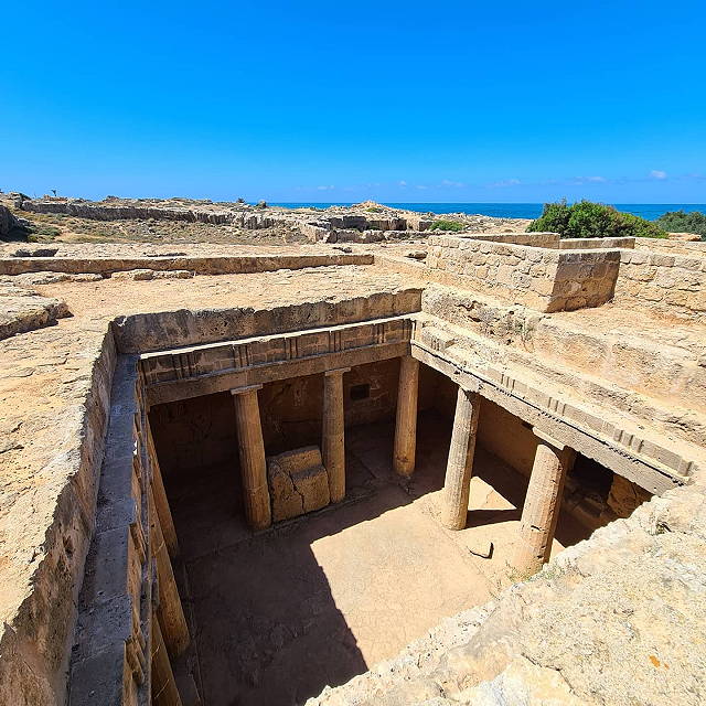 | The site dates back to the 4th century BCE and was used as a burial place for high-ranking officials and aristocrats during the Hellenistic and Roman periods. The tombs are carved out of solid rock and feature impressive architectural and artistic elements, including Doric pillars, frescoes, and intricate mosaics. The name "Tombs of the Kings" is a bit misleading, as no actual kings were buried here. However, the grandeur and size of the tombs suggest that they were built for people of great wealth and status. The site includes about 100 tombs, some of which are still being excavated and studied by archaeologists. Visitors can explore the site and see the various tombs and their features, including the impressive underground tombs with their vaulted ceilings and decorative elements. The site also has a visitor center with exhibits and information about the history and archaeology of the site. Overall, the Tombs of the Kings is an important and fascinating archaeological site that offers a glimpse into the ancient history and culture of Cyprus. | |