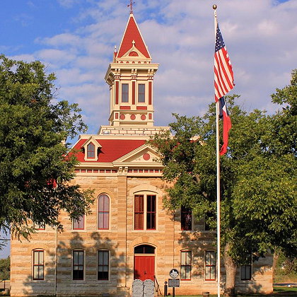 | Throckmorton County is a county located in the U.S. state of Texas. As of the 2020 census, its population was 1,440. Its county seat is Throckmorton. Throckmorton County encompasses 915 square miles of rolling country with red to black soils drained by the Clear Fork and Salt Fork of the Brazos River; elevations range between 1,200 to 1,800 feet above sea level. | |