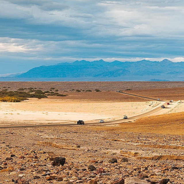 | Death Valley is a desert valley in Eastern California, in the northern Mojave Desert, bordering the Great Basin Desert. In this below-sea-level basin, steady drought and record summer heat make Death Valley a land of extremes. Yet, each extreme has a striking contrast. Towering peaks are frosted with winter snow. Rare rainstorms bring vast fields of wildflowers. Lush oases harbor tiny fish and refuge for wildlife and humans. | |