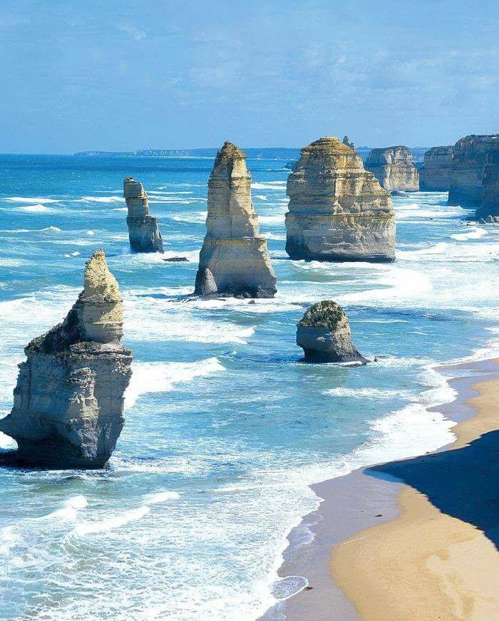 | The Twelve Apostles is a collection of limestone stacks off the shore of the Port Campbell National Park. | |