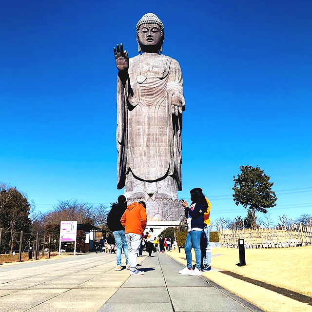 | Towering at a massive 120 meters, the Ushiku Daibutsu in Ushiku City, Ibaraki Prefecture, is one of the world's tallest Buddha statues. For comparison, Nara's Daibutsu in Todaiji Temple is only 15 meters high and can fit in the palm of the Ushiku Daibutsu. | |