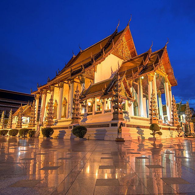| Wat Suthat Thepwararam is a prominent Buddhist temple located in Bangkok, Thailand. It is one of the oldest and largest temples in the city, known for its elegant architecture and rich historical and cultural significance. | |