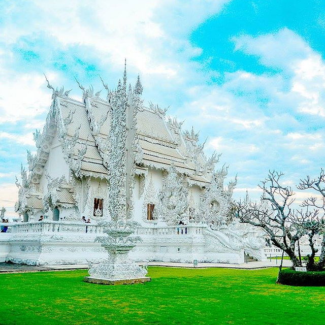 | Wat Rong Khun, commonly known as the White Temple, is a unique and visually stunning Buddhist temple located approximately 13 kilometers south of Chiang Rai city center in northern Thailand. In addition to the white structures, there is a golden building on the temple grounds that serves as a restroom for visitors. | |