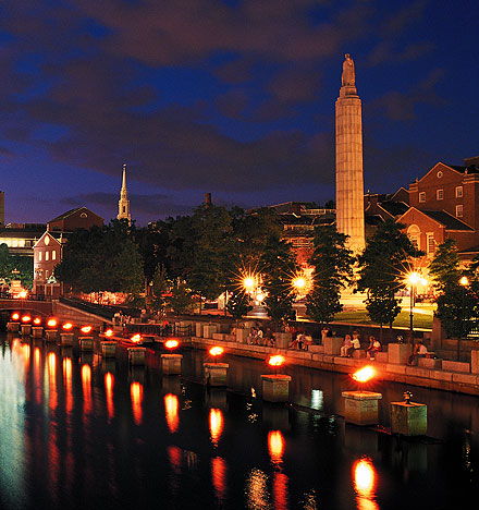 | WaterFire is a unique and internationally acclaimed art installation and cultural event that takes place in downtown Providence, Rhode Island. It is known for its captivating displays of fire and music along the city's rivers and has become a signature event in Providence's cultural calendar. | |