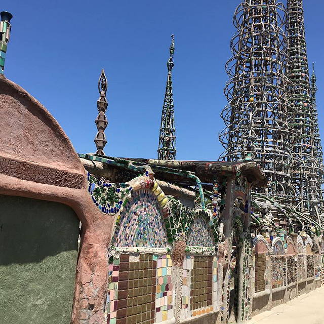 | The tallest of the towers reaches a height of over 99ft. The towers and walls were designed and built by Sabato Rodia, an Italian immigrant construction worker and tile mason, over a period of 33 years, from 1921 to 1954. | |