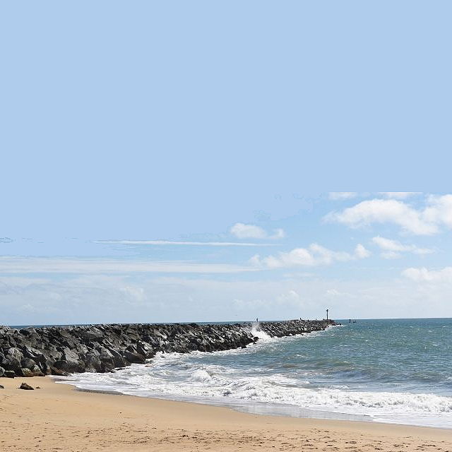 | West Jetty View Park is small, but the beach here is large. There is a long jetty at the entrance to Newport Bay that sticks out from the beach. | |
