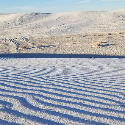 | White Sands National Park is a national park of the United States located in New Mexico and completely surrounded by White Sands Missile Range. Spanning nearly 275 square miles, White Sands is home to a surreal landscape of rolling white dunes, with 230 square miles open for exploration. It's a playground for hiking, sledding, stargazing, and more. | |