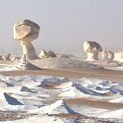 | The White Desert in Egypt is renowned for its stunning geological formations, including whimsical shapes like mushrooms, ice cream cones, a tent, and even a spaceship. As you traverse through this remarkable landscape, you will witness the intricate beauty of the local snow-white chalk outliers that create a truly otherworldly atmosphere. Each formation in the Black and White Desert tells a story, inviting you to interpret its shapes and contours in your own way. | |