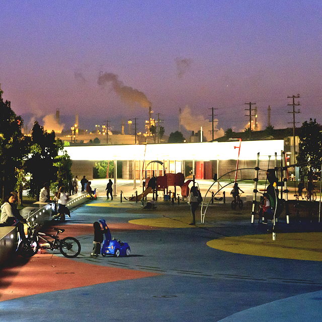 | Built on a 30-acre brownfield site, the Wilmington Waterfront Park revitalizes the community and visually reconnects it to the waterfront. The park integrates a variety of active and passive uses—informal play, public gathering, community events, picnicking, sitting, strolling, and observation—determined through an extensive community outreach process. | |
