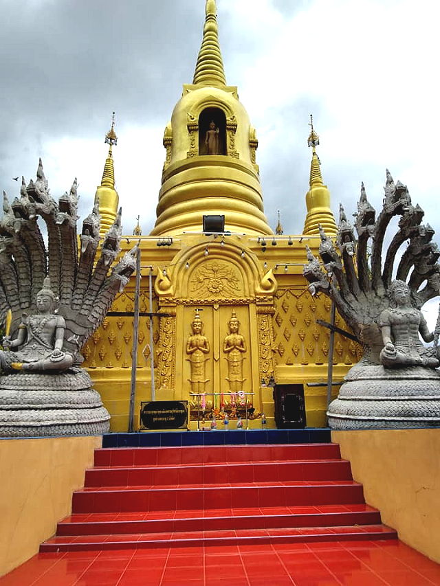 | The general natural condition is a forest and many small caves. The highlight of the temple is the Phrathat chedi, replica of the Buddha’s Footprint, and a large Buddha image in the posture of meditation, which is enshrined on the top of Khao Kaeo that is about 600 metres above sea level in height. | |