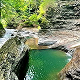 Buttermilk Falls State Park is a 811-acre (3.28 km2) state park located southwest of Ithaca, New York. It has a small lake, hiking trails through woodlands and along the gorge and rim, picnic areas, and playing fields. The lower portion of the park, which offers an easy view of the namesake Buttermilk Falls – the 165-foot cascade and last of 10 waterfalls along the creek, also has a natural pool and campground.