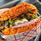 Mission Burgers and Chicken is known for its meaty burgers, including the OG Mission Burger and the iconic Goldie Melt, vegetarian options like the beet falafel burger, fresh fries, Yeti fries, onion rings, and unique flavored milkshakes. Everything is made from scratch, and the menu has been praised for its quality and creativity.