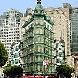 Columbus Tower, also known as the Sentinel Building, is a mixed-use building in San Francisco, California, completed in 1907. The distinctive copper-green Flatiron style structure is bounded by Columbus Avenue, Kearny Street, and Jackson Street; straddling the North Beach, Chinatown, and Financial District neighborhoods of the city.