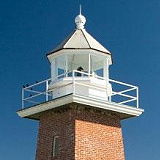 Located at the northern end of Monterey Bay, Santa Cruz Harbor is a haven for fishing craft and vessels. Walton Lighthouse stands 41 ½ feet tall above the level of the west jetty, and 59 ½ feet above the mean low water mark. It weighs 350,000 pounds and is built to withstand a quarter million pounds of wave energy.