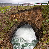 Sinking Whole is a giant punch bowl in the earth with a pool of water at the bottom. There's a dirt trail that takes you to the sinkhole and it's advised to wear long pants (in case of poison oak). Because it is actively eroding the fence around the hole protects visitors from impending dangers.