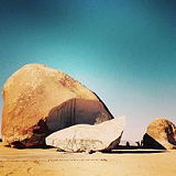 Giant Rock is a large freestanding boulder in the Mojave Desert near Landers, California, and the Marine Corps Air Ground Combat Center Twentynine Palms. The boulder covers 5,800 square feet (540 m2) of ground and is seven stories high (approximately 30 metres or 98 feet).