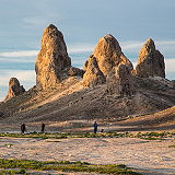 The Trona Pinnacles are a unique geological features in the California Desert Conservation Area. The unusual landscape consists of more than 500 tufa spires, some as high as 140 feet, rising from the bed of the Searles Dry Lake basin. The pinnacles vary in size and shape from short and squat to tall and thin, and are composed primarily of calcium carbonate (tufa). T