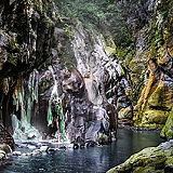 Lisong Canyon Hot Spring is one of the famous river-based hot springs located in the deep mountain in Taitung. Its water gushes out of the holes on stone slopes and even forms a waterfall of hot spring. The stone slope behind the waterfall is washed over time by hot spring water and now possesses a crystal-like texture.