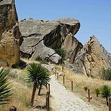 Gobustan State Historical and Cultural Reserve is located west of the settlement of Gobustan, about 40 miles (64 km) southwest of the center of Baku. It represents flora and fauna, hunting, lifestyles, and culture of pre-historic and medieval periods of time. The reserve has an outstanding collection of more than 6,000 rock engravings.