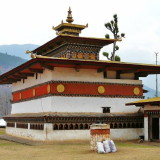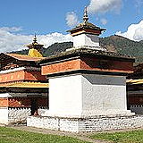 Chimi Lhakhang, also known as Chime Lhakhang or Monastery or temple, is a Buddhist monastery in Punakha District, Bhutan. Located near Lobesa, it stands on a round hillock and was built in 1499 by the 14th Drukpa hierarch, Ngawang Choegyel, after the site was blessed by the "Divine Madman" the maverick saint Drukpa Kunley (1455–1529) who built a chorten on the site.