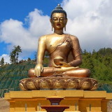 Great Buddha Dordenma is a gigantic Shakyamuni Buddha statue in the mountains of Bhutan celebrating the 60th anniversary of fourth king Jigme Singye Wangchuck. The statue houses over one hundred thousand smaller Buddha statues, each of which, like the Great Buddha Dordenma itself, will be made of bronze and gilded in gold.
