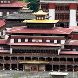 Tashichho Dzong is a Buddhist monastery and fortress. In 1641 Zhabdrung built the Tashicho Dzong (Fortress of the auspicious religion) in place of the Dho Ngon (Blue stone) Dzong built by Lama Gyalwa Lhanangpa. In 1698, the dzong caught fire and was restored.