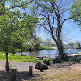 The Saddle Dam Day Use Area is a recreational area offering various activities like hiking, picnicking, and accessing the reservoir shoreline. It's a popular location for day trips and features amenities like restrooms, picnic tables, and a shade structure.