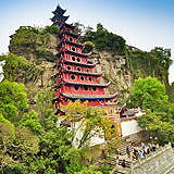 Shibaozhai Pagoda is a notable and unique architectural structure located in Zhongxian County, which is now part of Chongqing Municipality in southwestern China. The pagoda is known for its stunning location along the Yangtze River and its distinctive design, as it appears to be a wooden pagoda built into the side of a sheer rock hill.