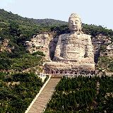 The Mengshan Giant Buddha is a stone statue located in the north peak of Mengshan Mountain, Taiyuan and built during the Northern Qi dynasty. Initially discovered in a 1980 census, the statue was found to have its head missing. From 2006 to 2008, people constructed a 12-meter tall head for the statue. The site opened to the public on October 2008.