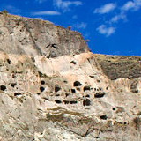 Vardzia is a remarkable cave monastery complex and historical site located in the Gogasheni region of Georgia, in the South Caucasus. It's renowned for its unique architecture, historical significance, and stunning natural surroundings. The complex is excavated from the slopes of the Erusheti Mountain on the left bank of the Kura River.
