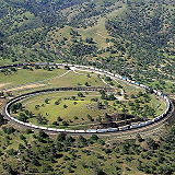 The Tehachapi Loop is a 3,779 feet (0.72 mi; 1.15 km) long spiral, or helix, on the Union Pacific Railroad Mojave Subdivision through Tehachapi Pass, of the Tehachapi Mountains in Kern County, south-central California. The line connects Bakersfield and the San Joaquin Valley to Mojave in the Mojave Desert.
