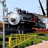 On display is a Southern Pacific Steam Locomotive and Tender, a 1910 Union Pacific Caboose, a modern all steel Santa Fe caboose, a 1923 Union Oil Tank Car and a 1913 Southern Pacific outside-braced wood box car.