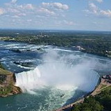 Horseshoe Falls is the largest of the three waterfalls that collectively form Niagara Falls on the Niagara River along the Canada–United States border. Approximately 90% of the Niagara River, after diversions for hydropower generation, flows over Horseshoe Falls. The remaining 10% flows over American Falls and Bridal Veil Falls.