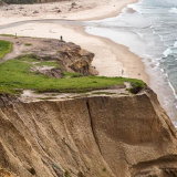 Located 12 miles south of Half Moon Bay along the San Mateo coastline, Pomponio State Beach provides access to miles of gently sloping, sandy beaches at the base of high sandstone bluffs. The beach features a small lagoon and roaring surf. Facilities include picnic tables and pit toilets.