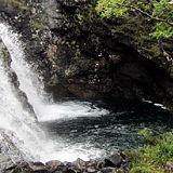 The Fairy Pools are located at the foot of the Cuillin mountain range on the Isle of Skye. Mainly composed of basalt and gabbro, it is from the dark colour of the gabbro that the Black Cuillin derives its name. The summits of the Cuillin are bare rock, jagged in outline and with steep cliffs and deep cut corries and gullies.