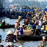 Chợ nổi Trà Ôn (Tra On Floating Market) is a vibrant market located on the Hau River in the town of Tra On in Vinh Long province, Vietnam. The market is one of the busiest and most colorful floating markets in the Mekong Delta, attracting traders and tourists alike.
