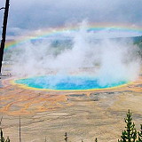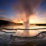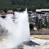Old Faithful is a cone geyser located in Yellowstone National Park in Wyoming. It was named in 1870 during the Washburn-Langford-Doane Expedition and was the first geyser in the park to receive a name. It is a highly predictable geothermal feature, and has erupted every 44 to 125 minutes since 2000. The geyser and the nearby Old Faithful Inn are part of the Old Faithful Historic District.