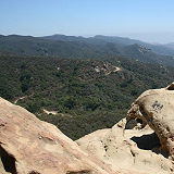 Boney Mountain in Ventura County, California is one of the highest peaks in the Santa Monica Mountains. The prominent mountain visible from Newbury Park, California is 2,825 feet (861 m). It is also known as Boney Peak.