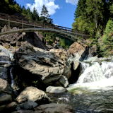 Webber Falls plunges 76 feet into a deep gorge carved out of basaltic bedrock. It is located in Sierra County. The water for Webber Falls comes out of Webber Lake which is privately operated and not open to public access. The falls themselves drop in several cascades with the largest cascade at the bottom level falling about 50 feet.